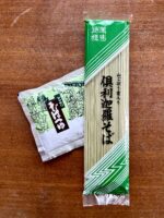 袋に「国産そば粉使用」と印刷してあり、左側に「長野県産そば粉使用」のシールが貼ってあるので、恐らくいつも長野産ではないのであろう。ホームページを見ると長野産シールが貼っていない商品の茹で時間が5分(1分長い)となっている。購入するときに注意が必要だ。