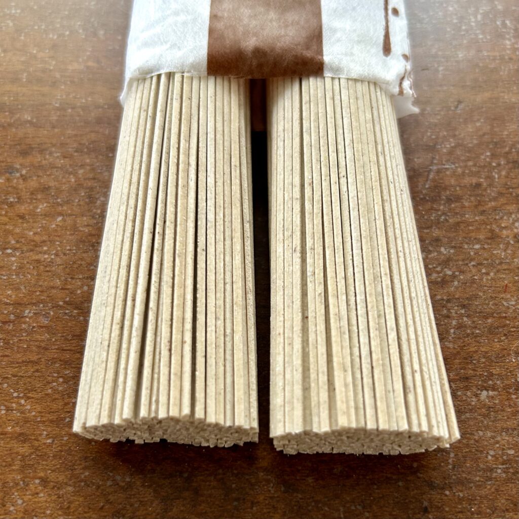 この干しそばは同じ玄そばを石臼で粗挽きにして使用している。