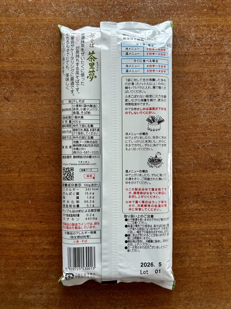 母が浜松出身で緑茶にはうるさい私だけど、この茶そばには太鼓判を押せる。