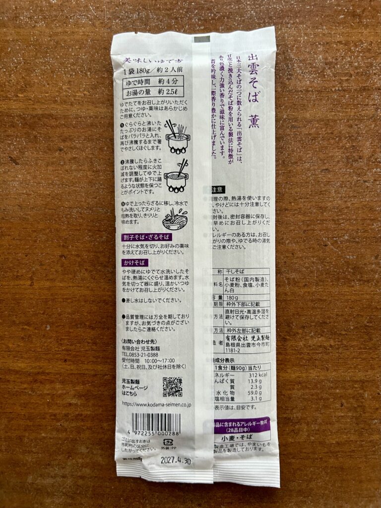 【原材料】 そば粉(国内製造)、小麦粉、食塩、小麦たん白