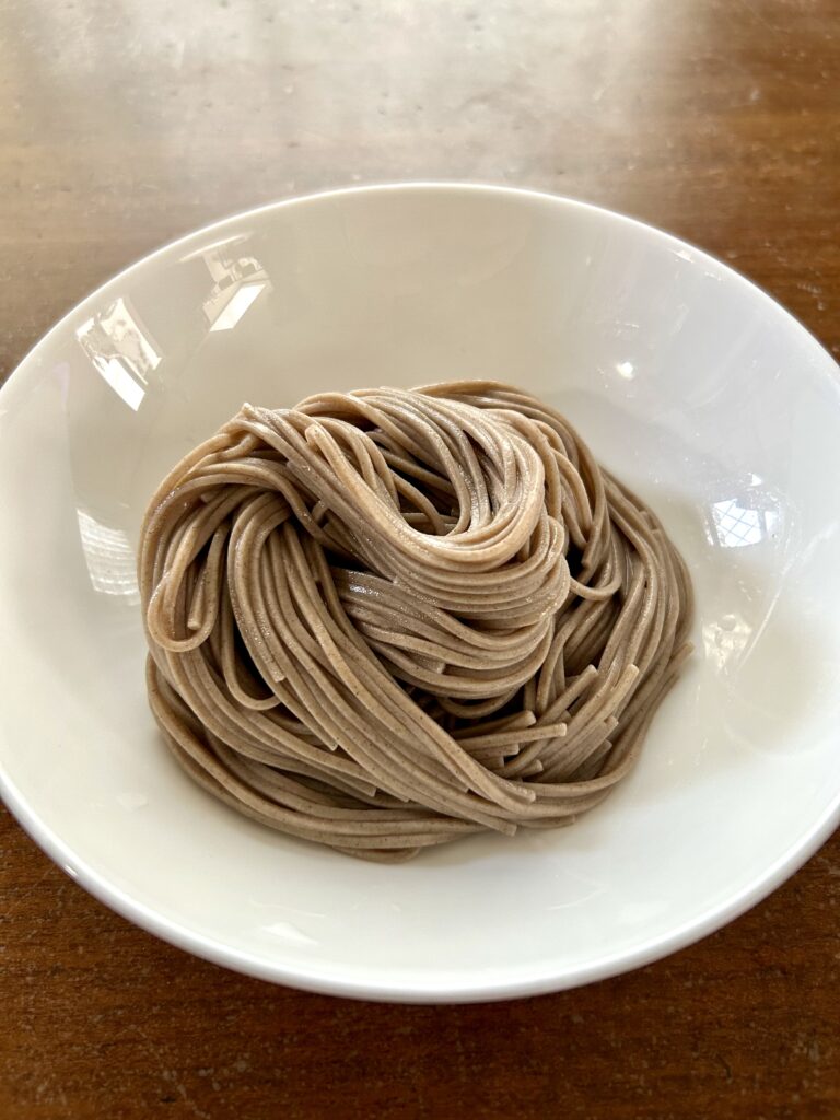 乾麺の「薫」は細麺、レギュラー、茶そばの3種類があり、今回はレギュラーをいただいた。そば粉割合は表記されていないが、そばの香りと甘みがしっかり感じることから6割以上と思われる。もっちりして適度な嚙み応えは蕎麦らしい食感。茹で上がりの美しさも含めて上質感あふれる干しそばだった。