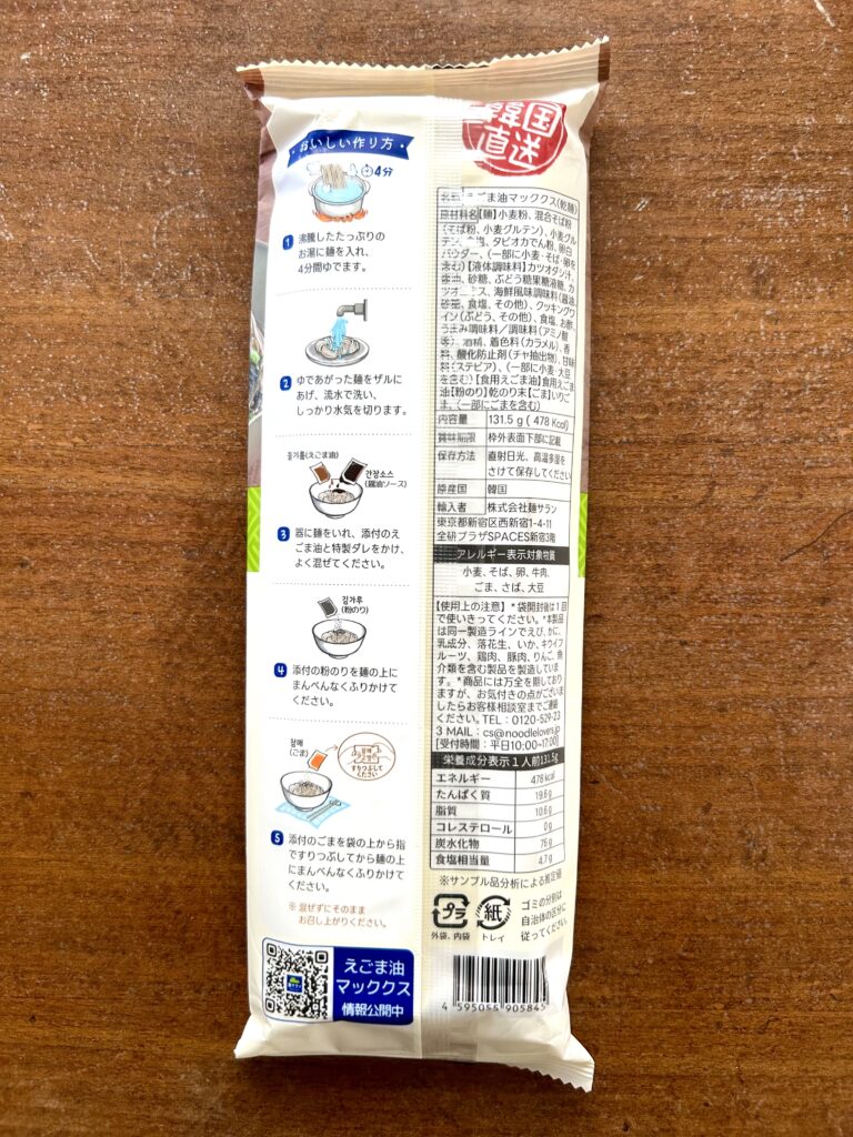 【原材料】 麺:そば粉、小麦グルテン、小麦グルテン、食塩、タピオカでん粉、卵白パウダー(付属:醤油たれ、えごま油、ごま、粉海苔)