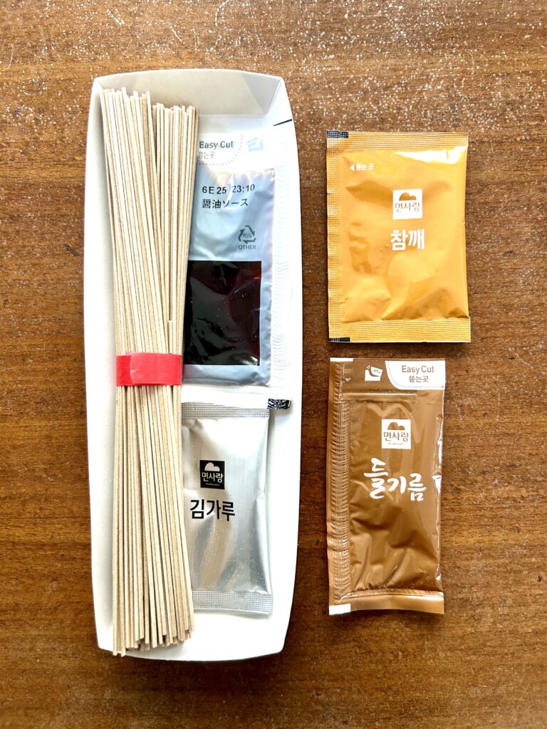 トゥルギルムマッククス(들기름 막국수)とは、エゴマ油の香ばしさと蕎麦の素朴な味わいが調和した、コレステロールゼロのヘルシーな麺料理。 いま韓国で大変人気があり、それが自宅で手軽に食べられる商品なのだ。